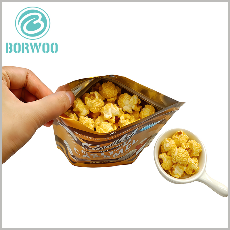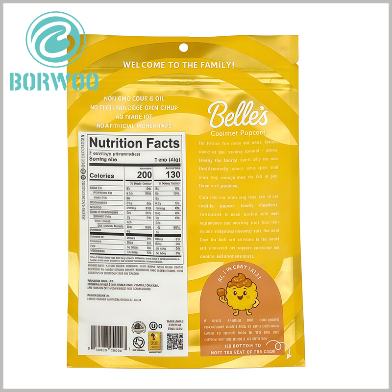 Crafted from metallized foil material, this pouch offers superior barrier protection against moisture, oxygen, and light, locking in the crispy texture and rich flavor of gourmet popcorn—solving a common pain point that drives Google searches for “freshness lock popcorn packaging.” Fully food-grade and BPA-free, it meets U.S. FDA standards, ensuring safe direct contact with edible goods and addressing core search queries around snack packaging safety. Made from eco-friendly, recyclable materials, it also taps into the booming sustainable packaging trend, boosting your visibility for eco-focused keywords like “recyclable popcorn pouches.”
