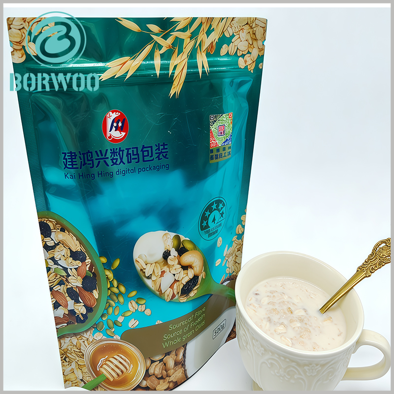 The biggest highlight is our full customization service that matches your brand identity. We offer high-definition custom printing to show your logo, brand story, nutritional information, and oat origin on the pouch. You can also choose matte, glossy, or metallic finishes, and add clear windows to present the quality of oats clearly, helping your brand stand out in the market.