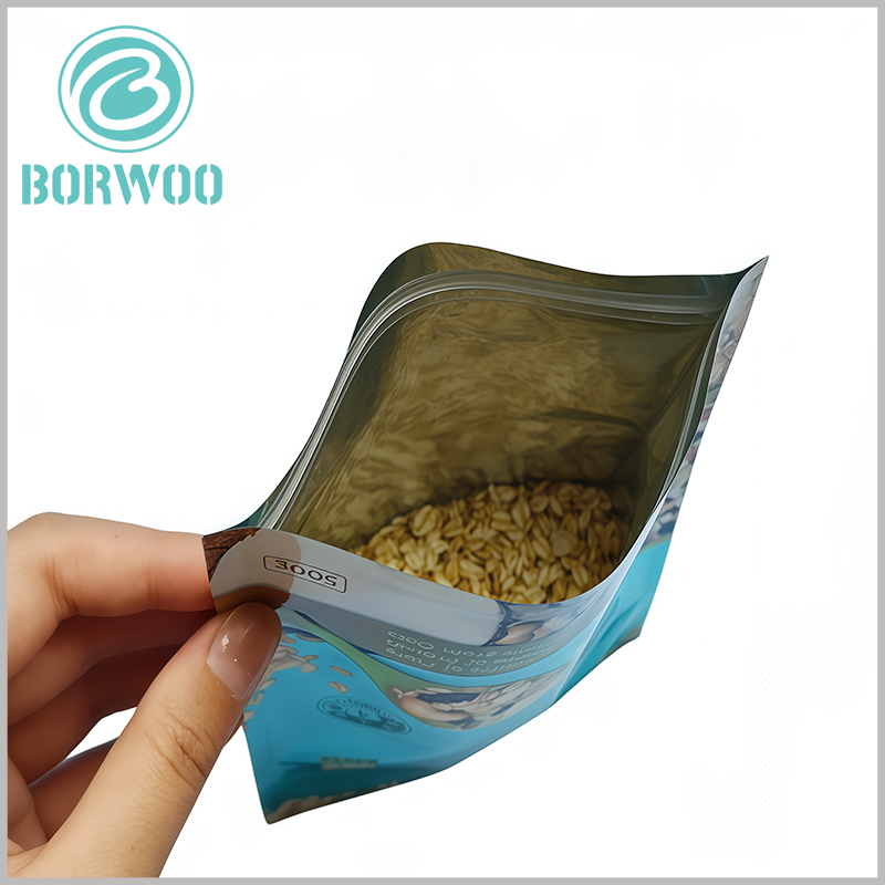 Crafted from food-grade, BPA-free laminated materials, this pouch puts product safety and long-lasting freshness first. Its high-barrier structure effectively blocks moisture, oxygen, and light, stopping whole grain oats from clumping, losing their natural nutty flavor, or reducing nutritional value. Equipped with a tight resealable zipper, it can be opened and closed repeatedly, keeping oats fresh after opening and cutting down food waste—perfect for daily breakfast, baking, and on-the-go use.