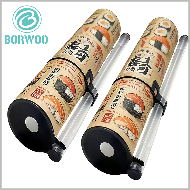 Made of food-grade safe material, this practical sushi push up pop tube features a 50mm diameter and 220mm height, perfect for sushi storage and on-the-go serving. It is equipped with a dedicated plastic tube (10mm diameter, 220mm height) designed to hold sushi condiments like wasabi and soy sauce. The tube has a black base with a pre-drilled hole for the push mechanism, and an internal plastic round tray that securely holds sushi rolls—simply insert the plastic tube through the base hole to push the tray upward and dispense sushi from the top with ease. Custom printing is available on the container, ideal for showcasing your brand logos and product information to boost brand promotion and product exposure.